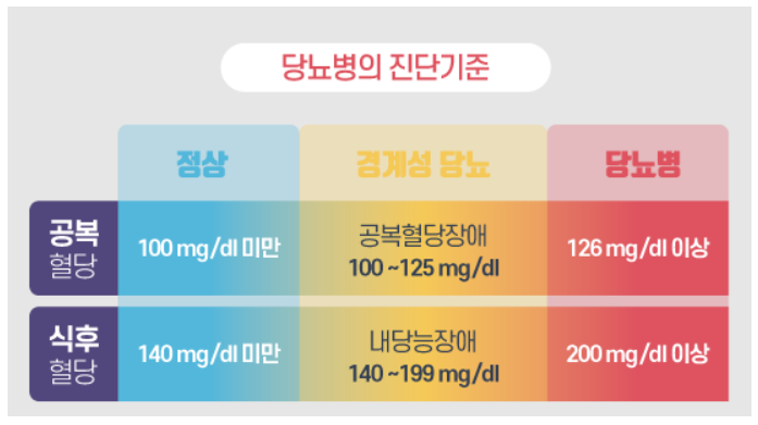 - 당뇨병 의심: 126mg/dL 이상